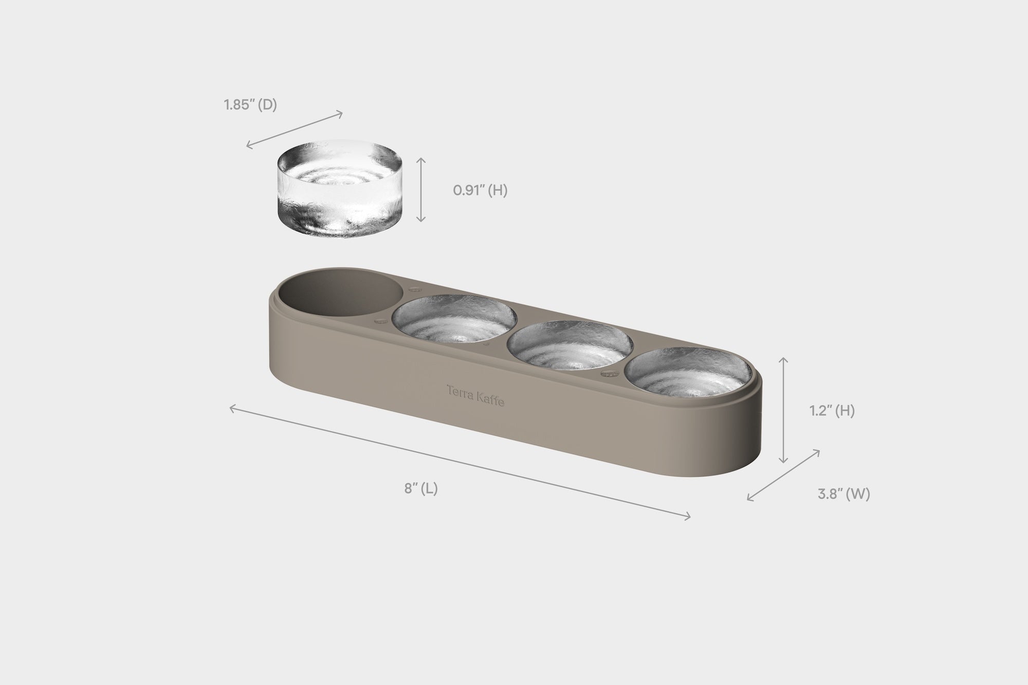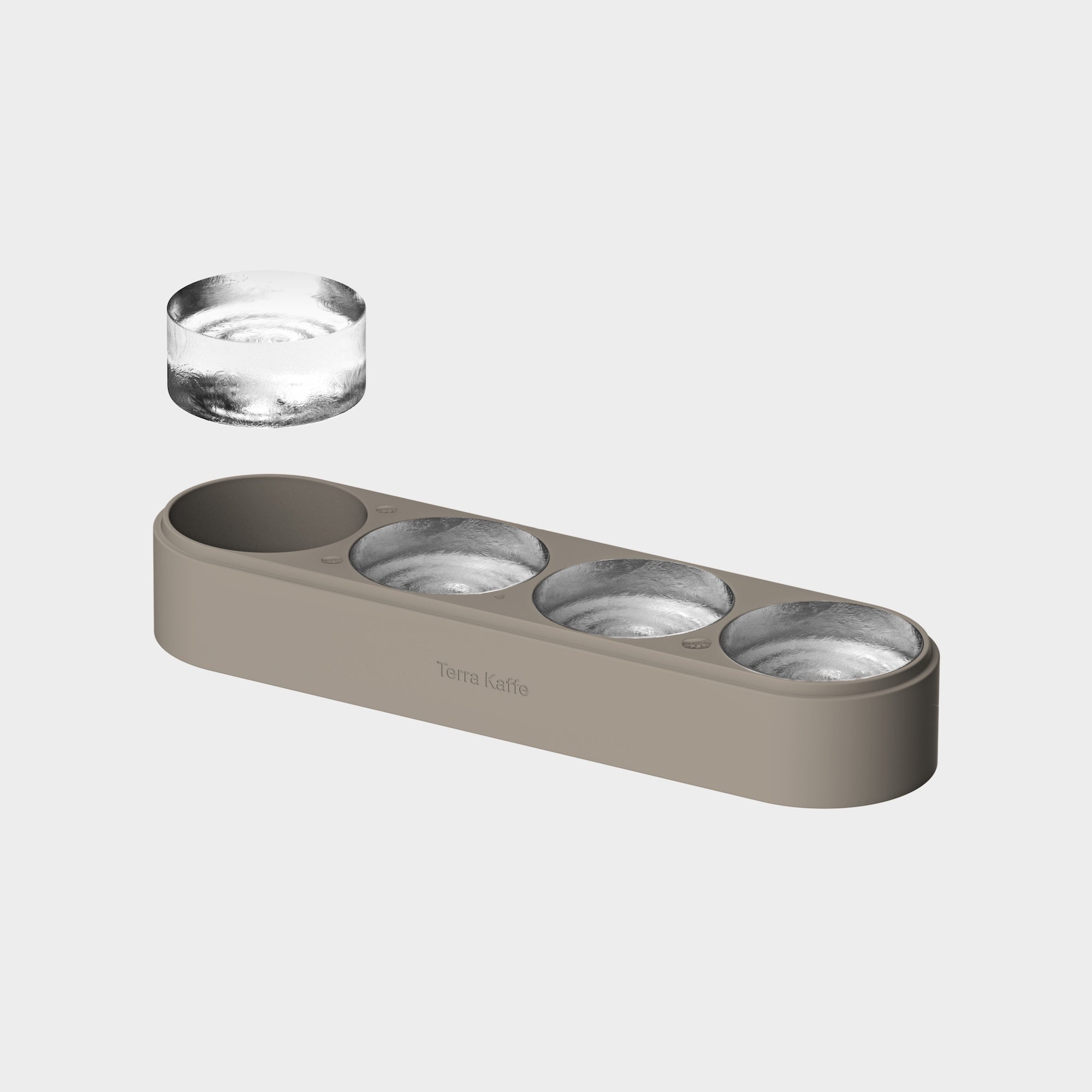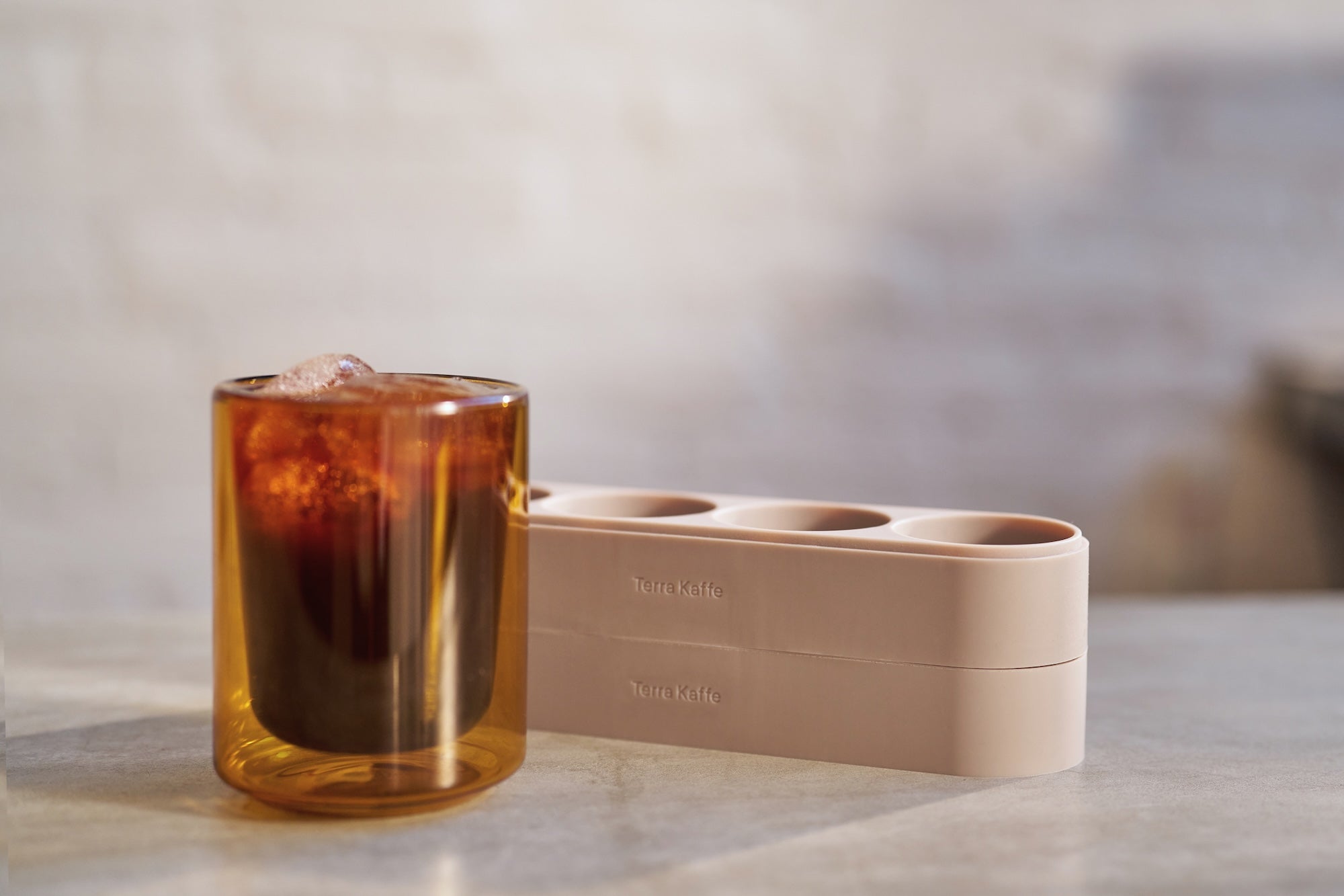 A flexible silicone tray that creates cylindrical ice pucks made to drop right into our Aeris glassware.