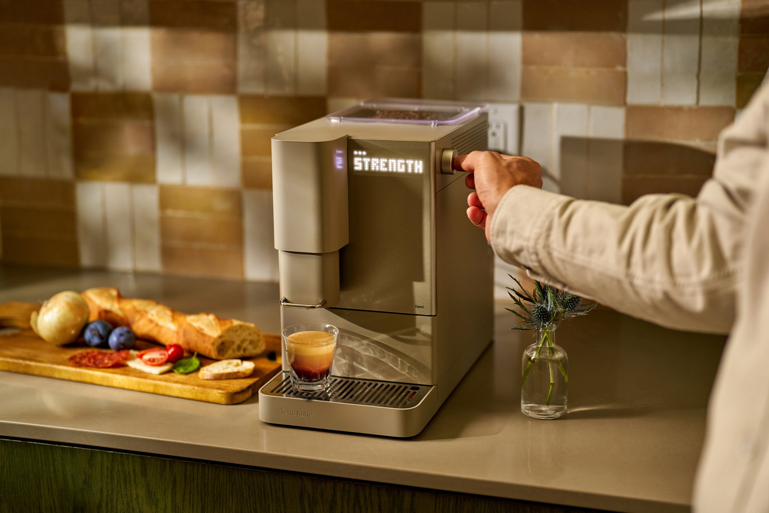 The most intuitive espresso machine in its class by Terra Kaffe. A new standard in compact design and brewing precision, Demi brings barista-level coffee home. Includes: